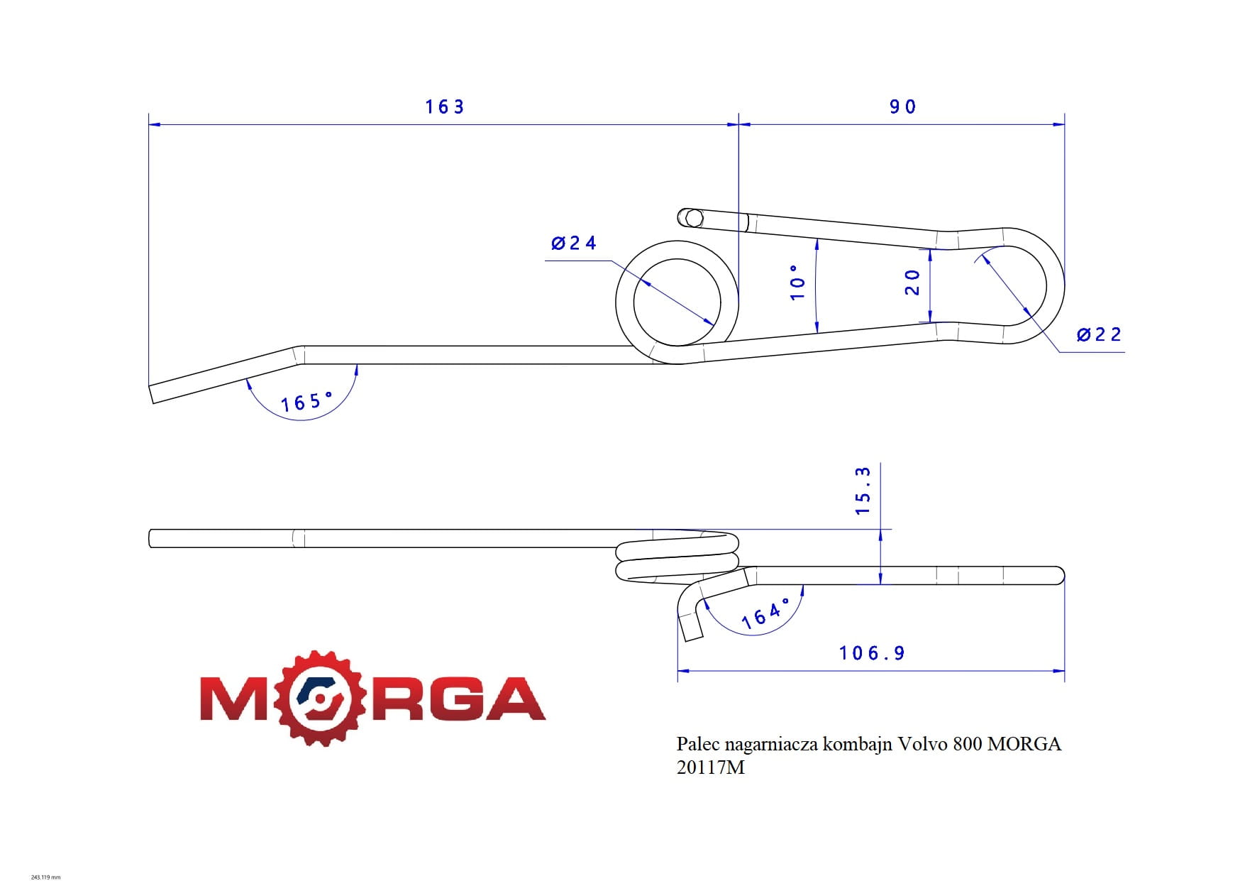 Palec nagarniacza kombajn Volvo 800 W20117 malowane proszkowo MORGA