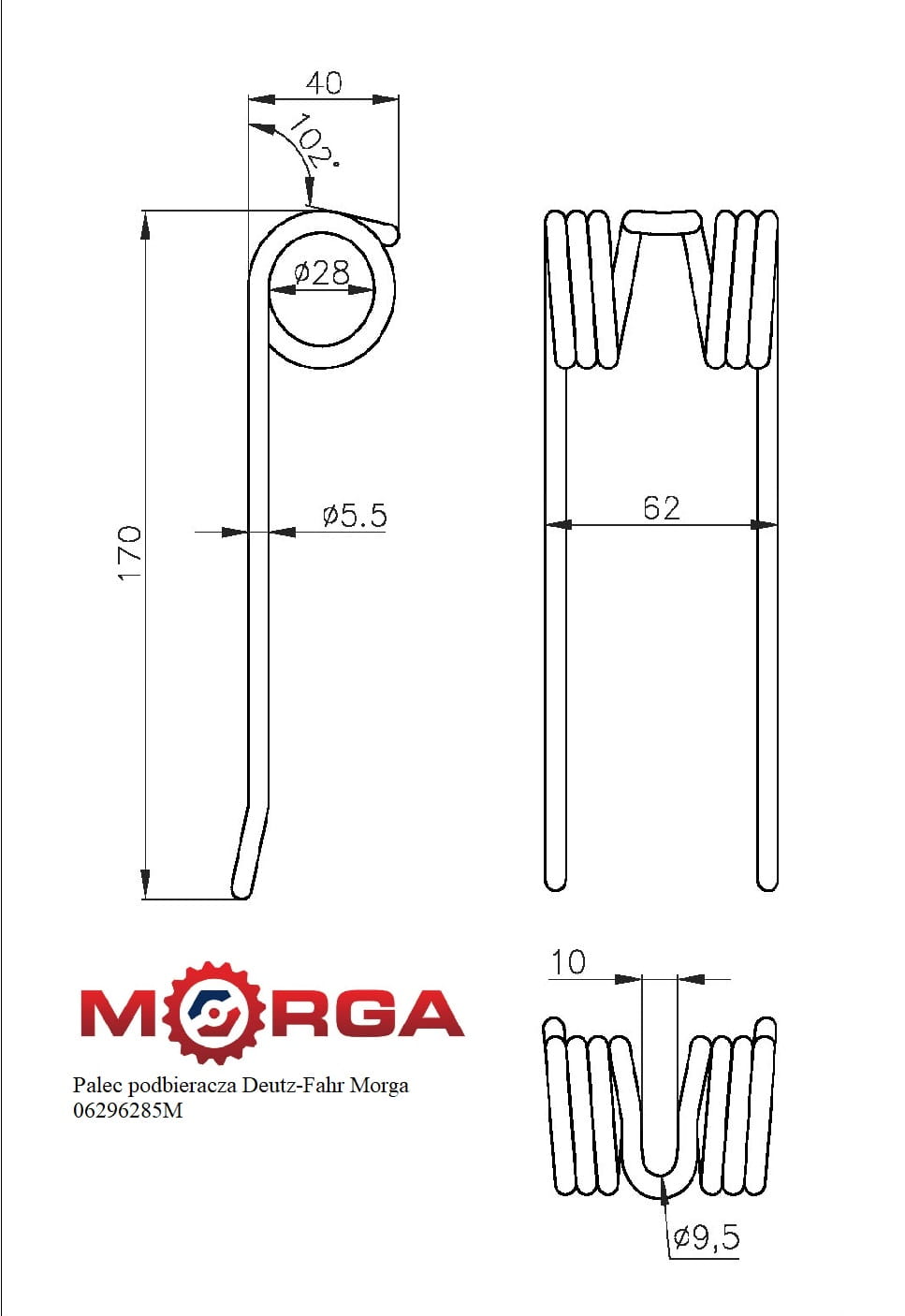 Palec podbieracza Deutz-Fahr 06296285 malowane proszkowo MORGA