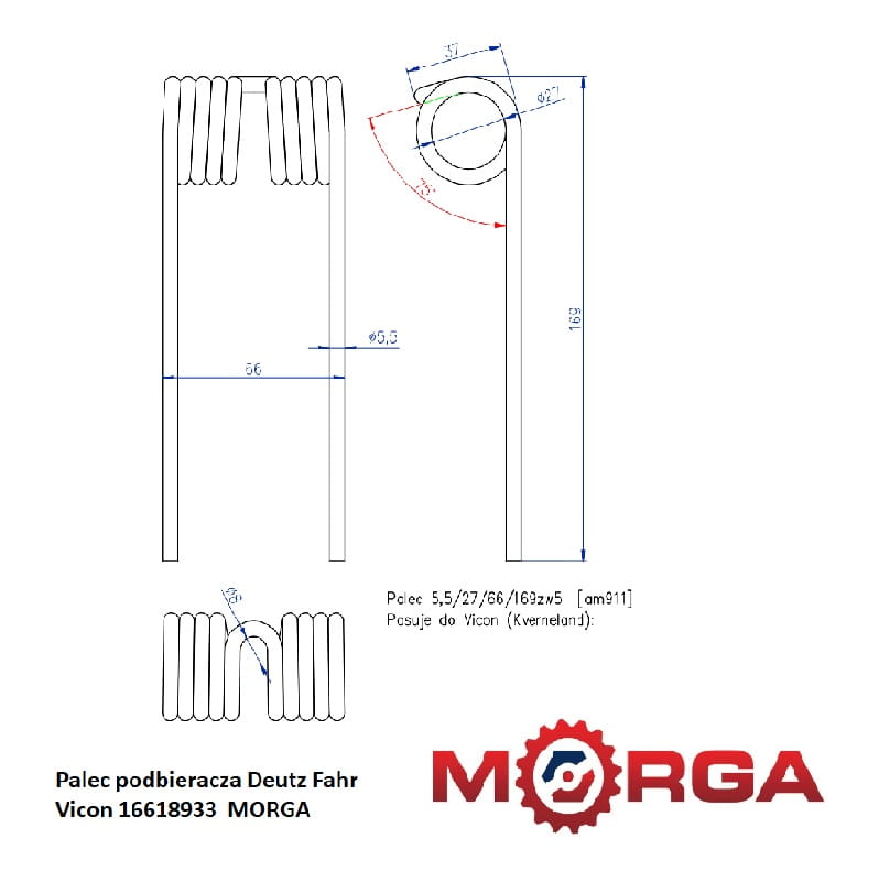 Palec podbieracza Deutz Fahr Vicon 16618933 malowany proszkowo MORGA