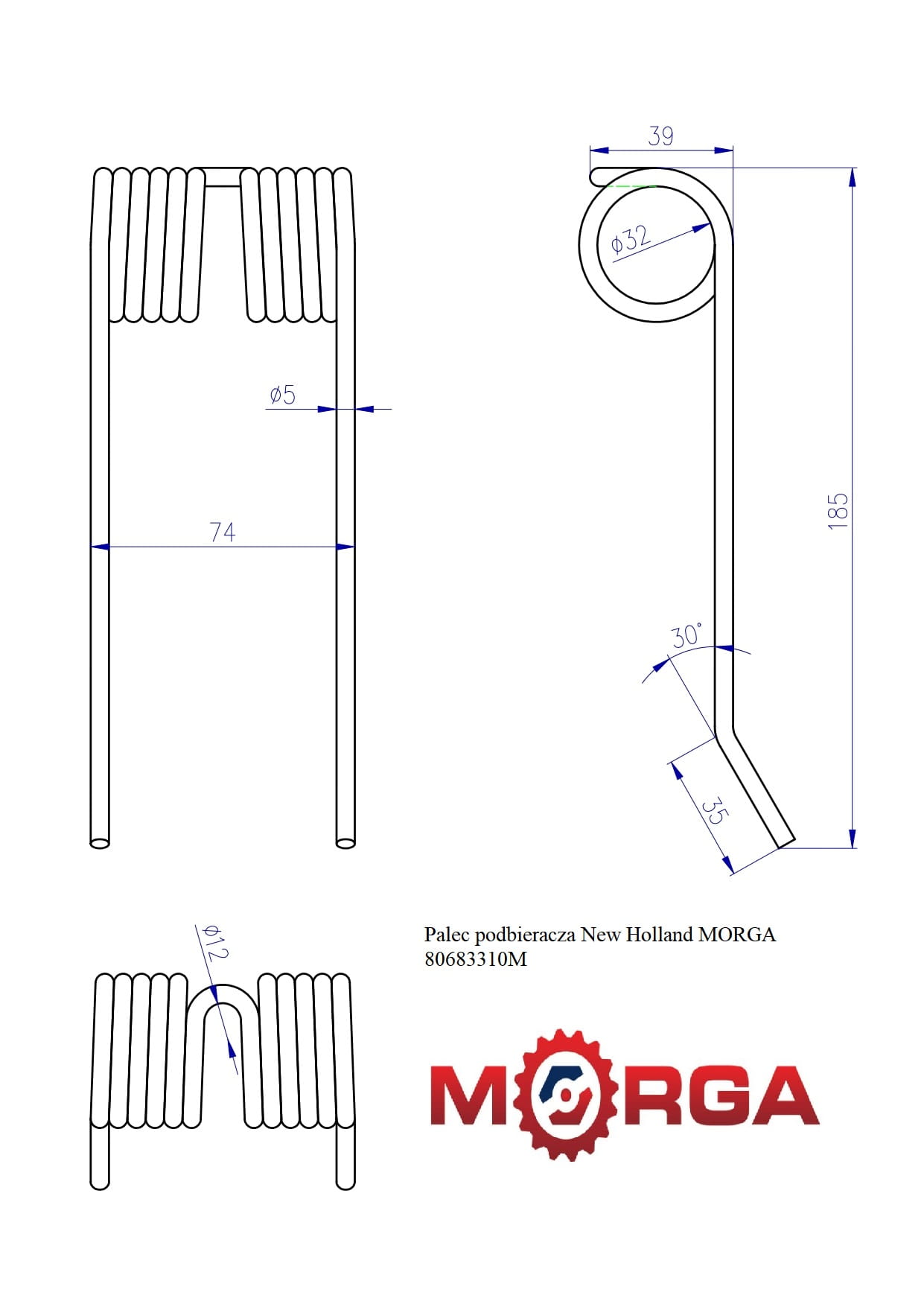 Palec podbieracza New Holland 80683310 malowane proszkowo MORGA