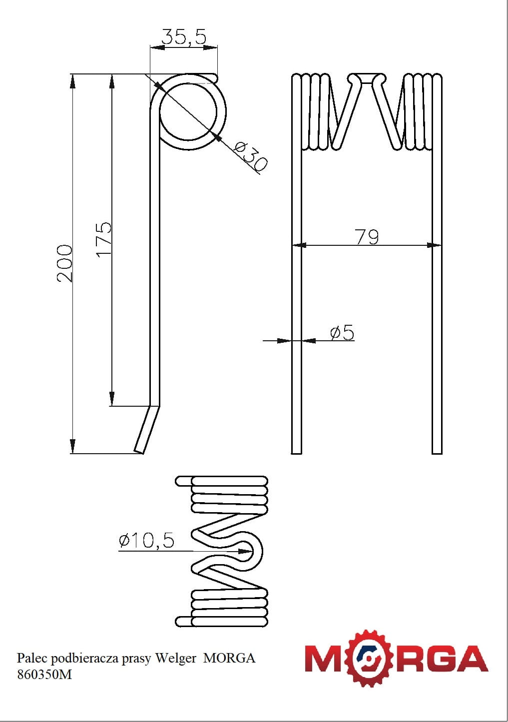 Palec podbieracza prasy Welger malowane proszkowo MORGA