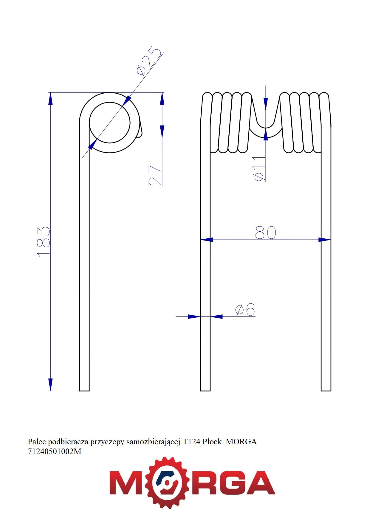 Palec podbieracza przyczepy samozbierającej T124 71240501002 Płock malowane proszkowo MORGA