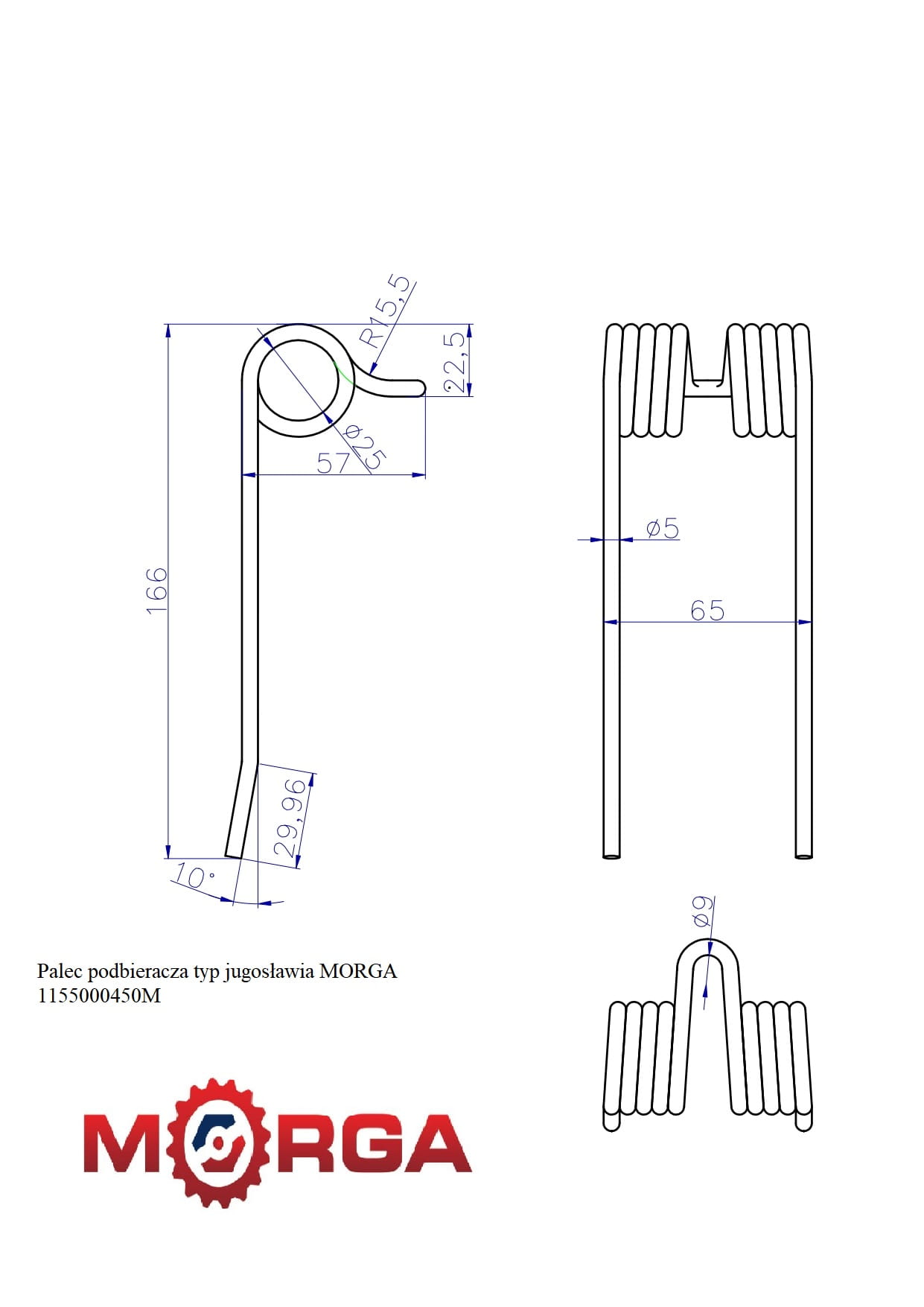 Palec podbieracza typ jugosławia 7087500040, 10005060 malowane proszkowo MORGA