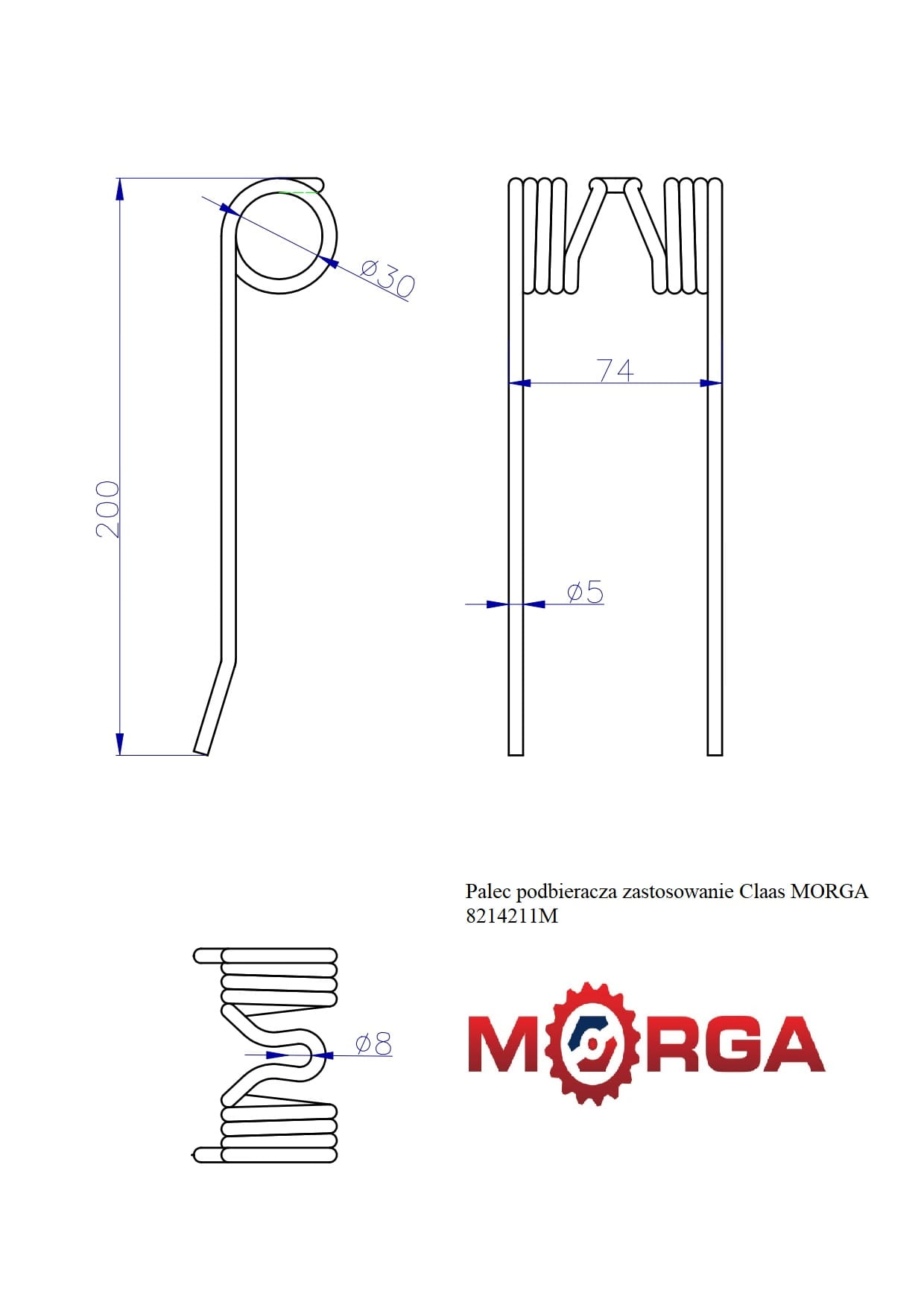 Palec podbieracza zastosowanie Claas 8214211 8603510 malowane proszkowo MORGA