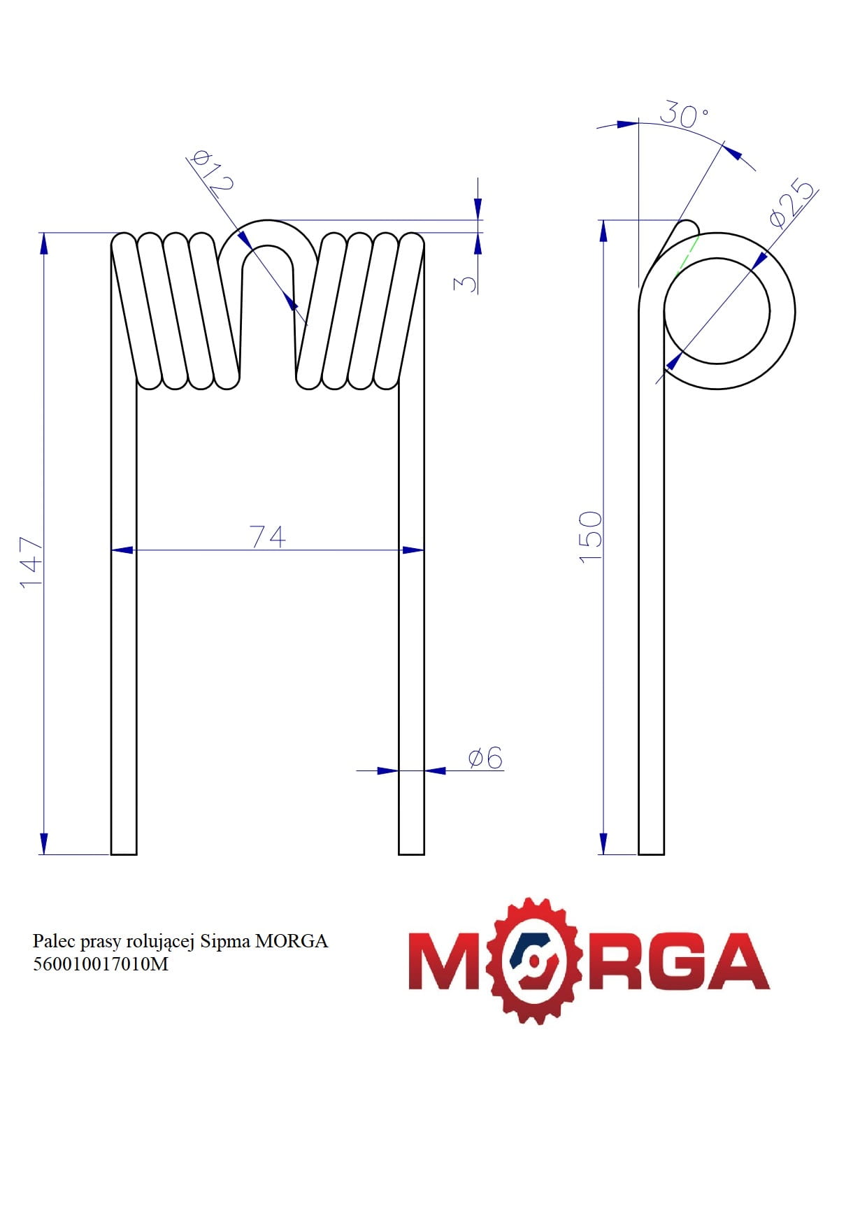 Palec prasy rolującej Sipma L 170mm malowane proszkowo MORGA