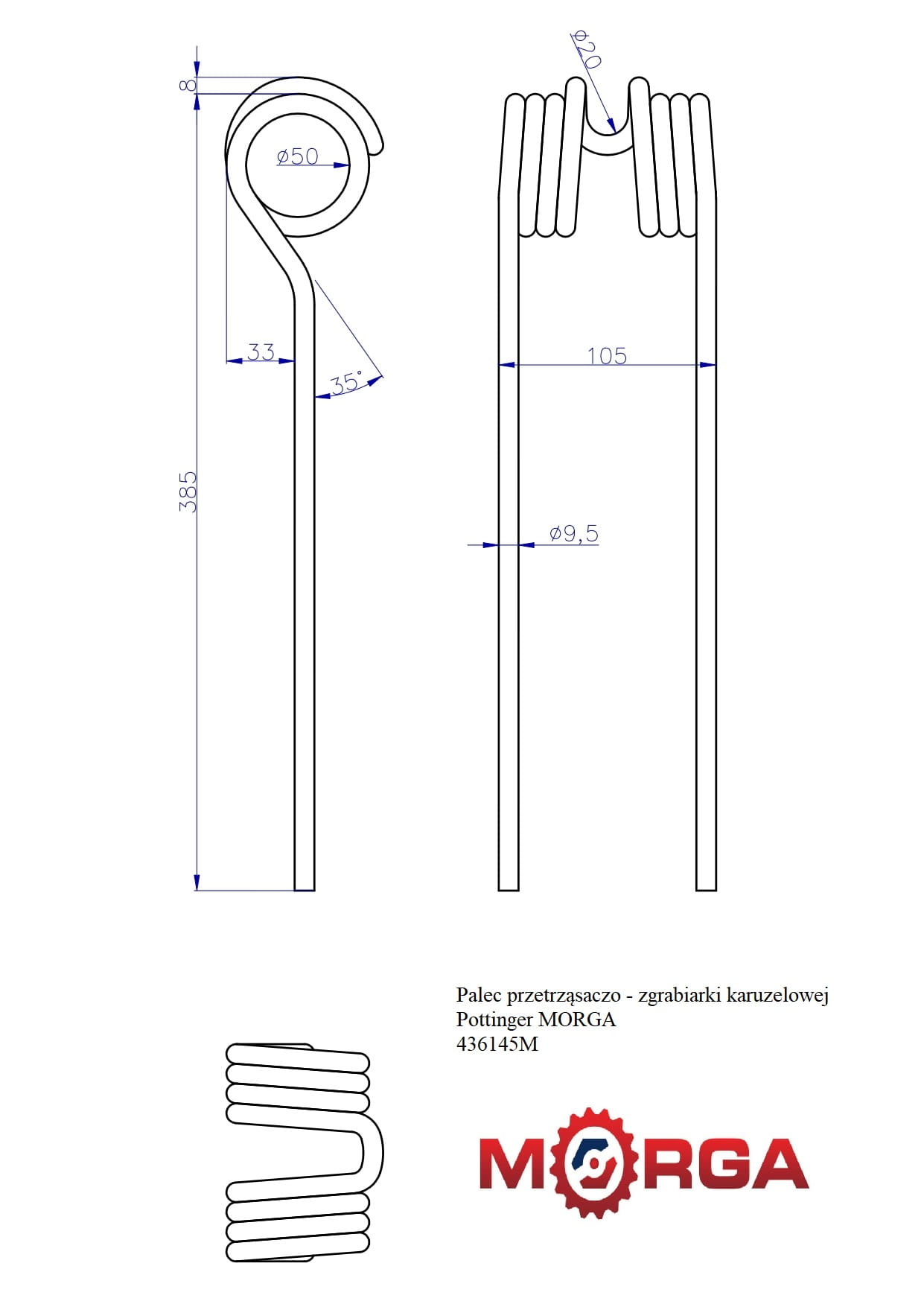 Palec przetrząsaczo - zgrabiarki karuzelowej 436145 Pottinger malowane proszkowo MORGA