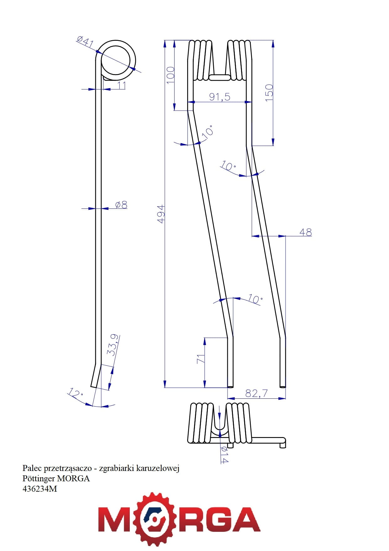 Palec przetrząsaczo - zgrabiarki karuzelowej 436234 Pöttinger malowane proszkowo MORGA