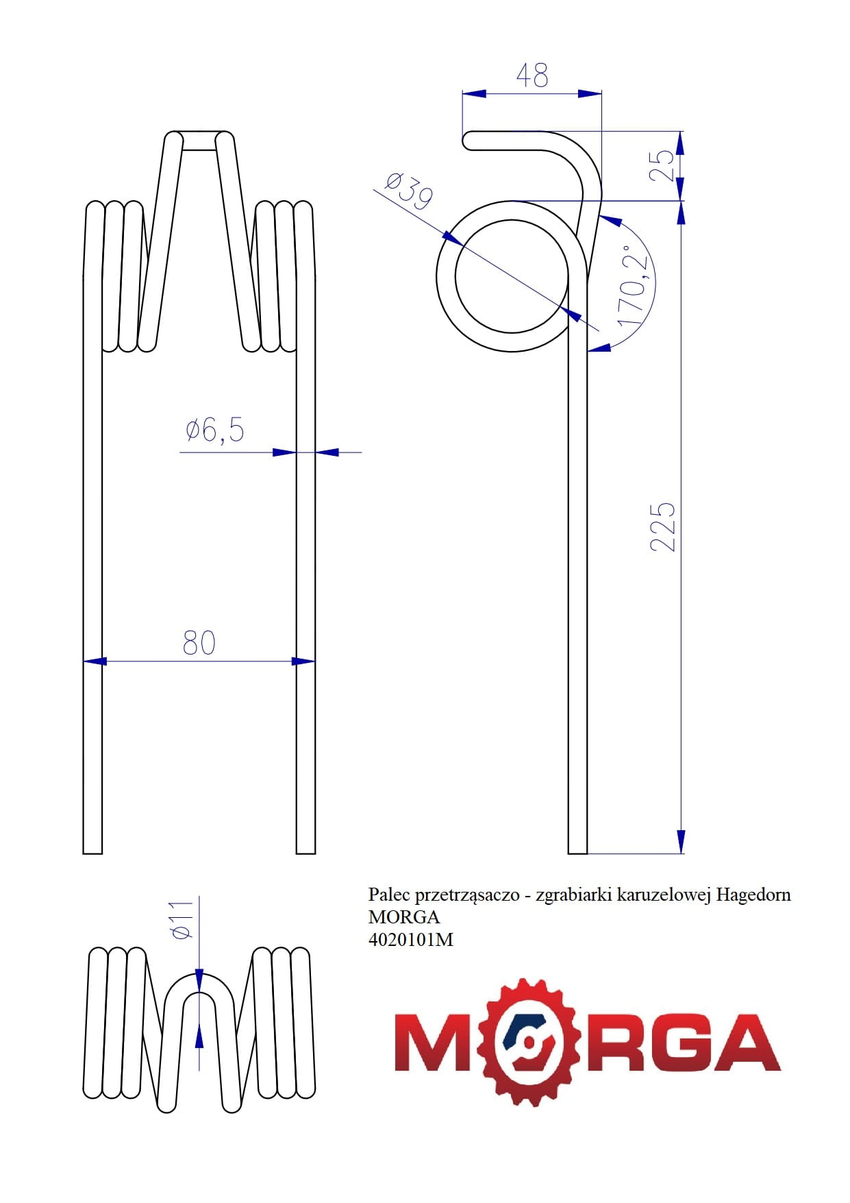 Palec przetrząsaczo - zgrabiarki karuzelowej Hagedorn malowane proszkowo MORGA