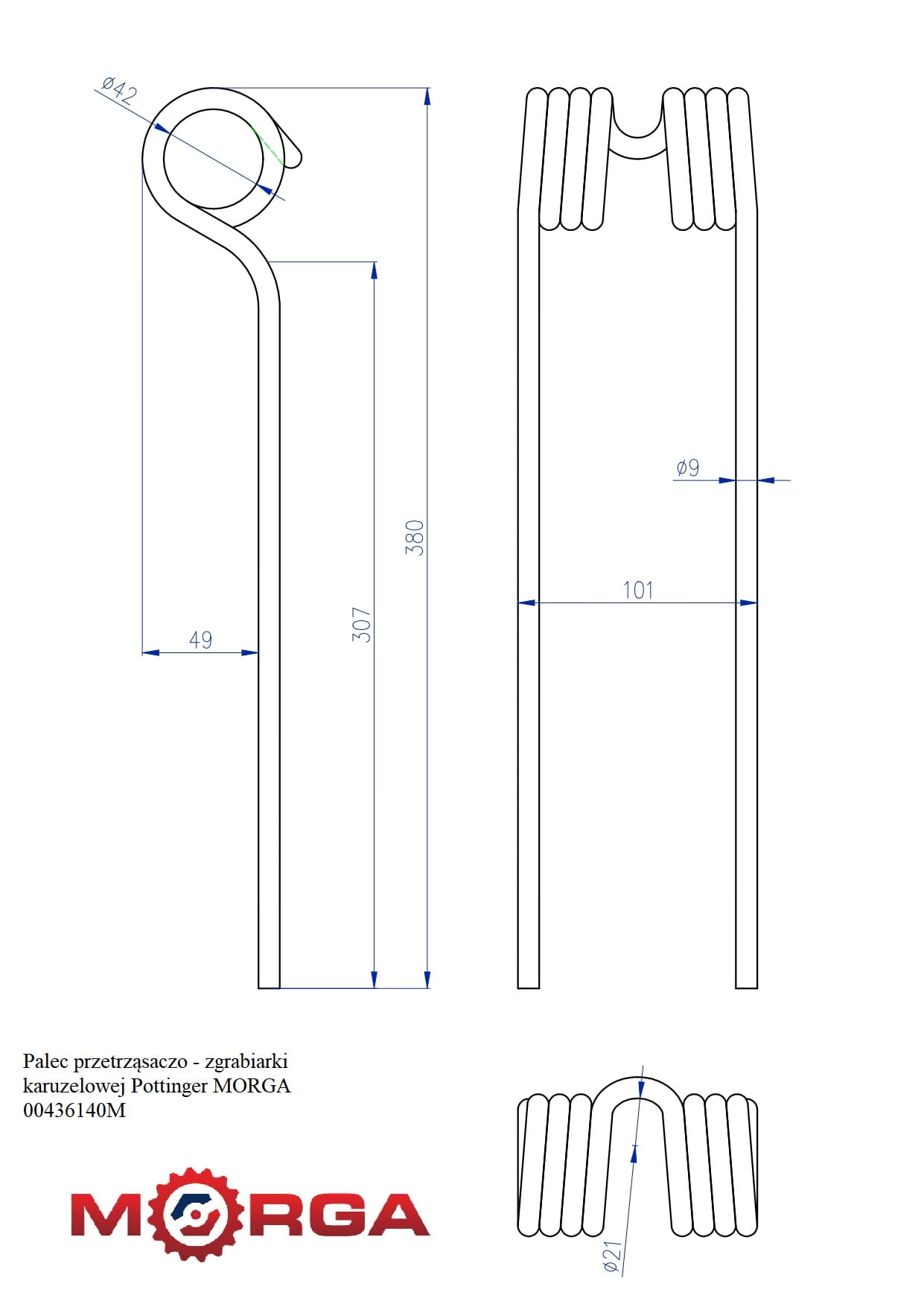 Palec przetrząsaczo - zgrabiarki karuzelowej Pottinger malowane proszkowo MORGA