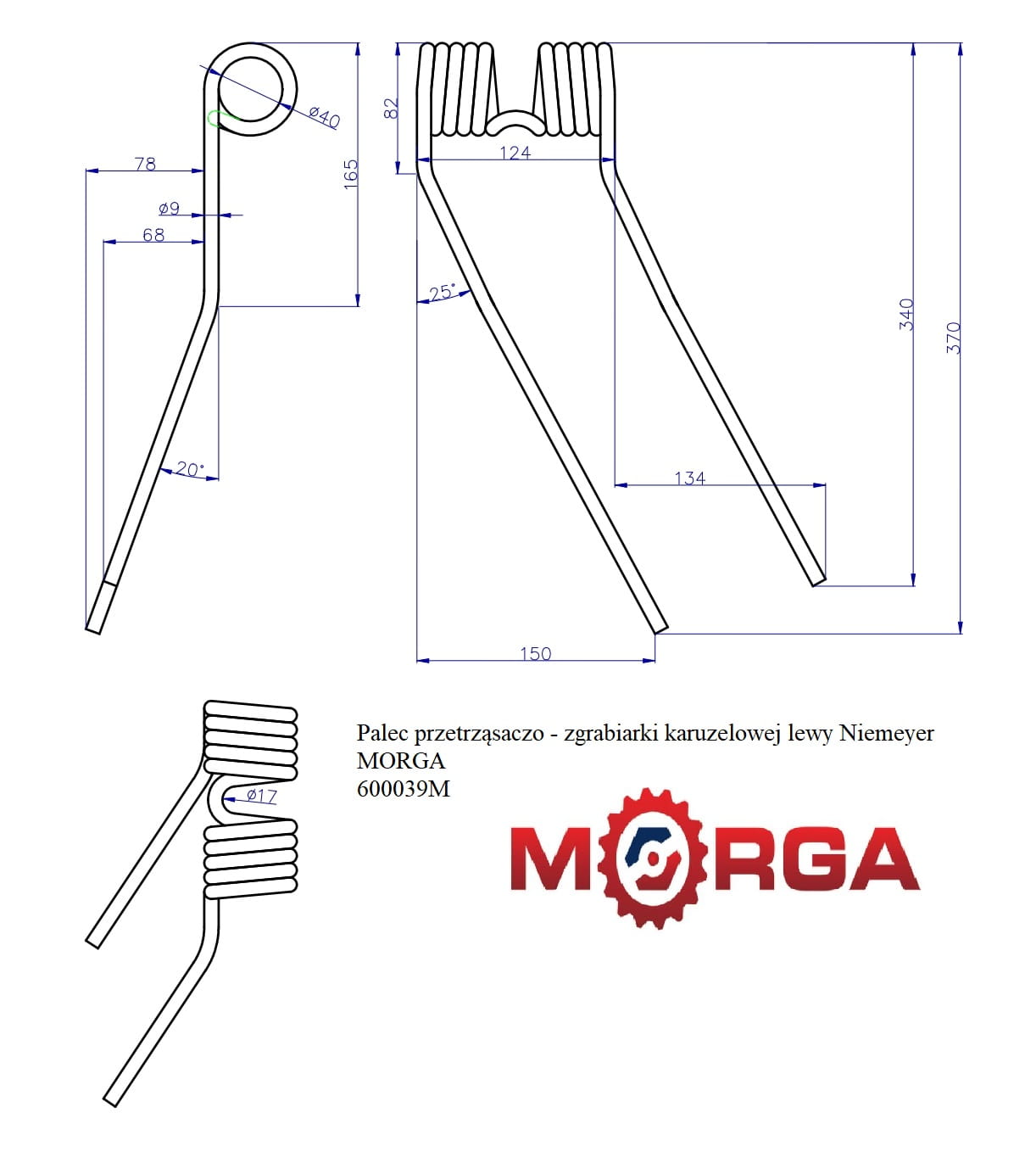 Palec przetrząsaczo - zgrabiarki karuzelowej lewy Niemeyer 600.011 malowane proszkowo MORGA