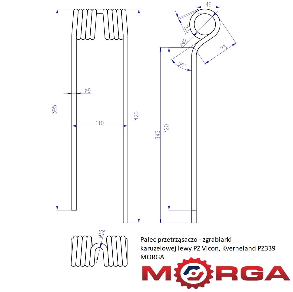 Palec przetrząsaczo - zgrabiarki karuzelowej lewy PZ Vicon, Kverneland malowane proszkowo MORGA