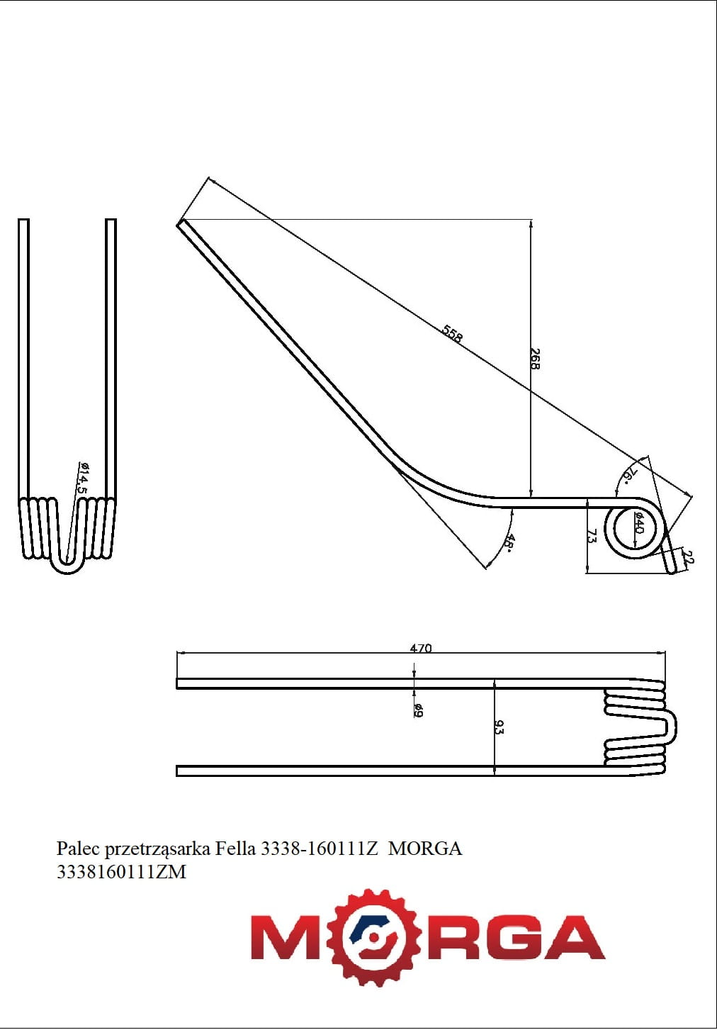 Palec przetrząsarka Fella 3338-160111Z malowane proszkowo MORGA