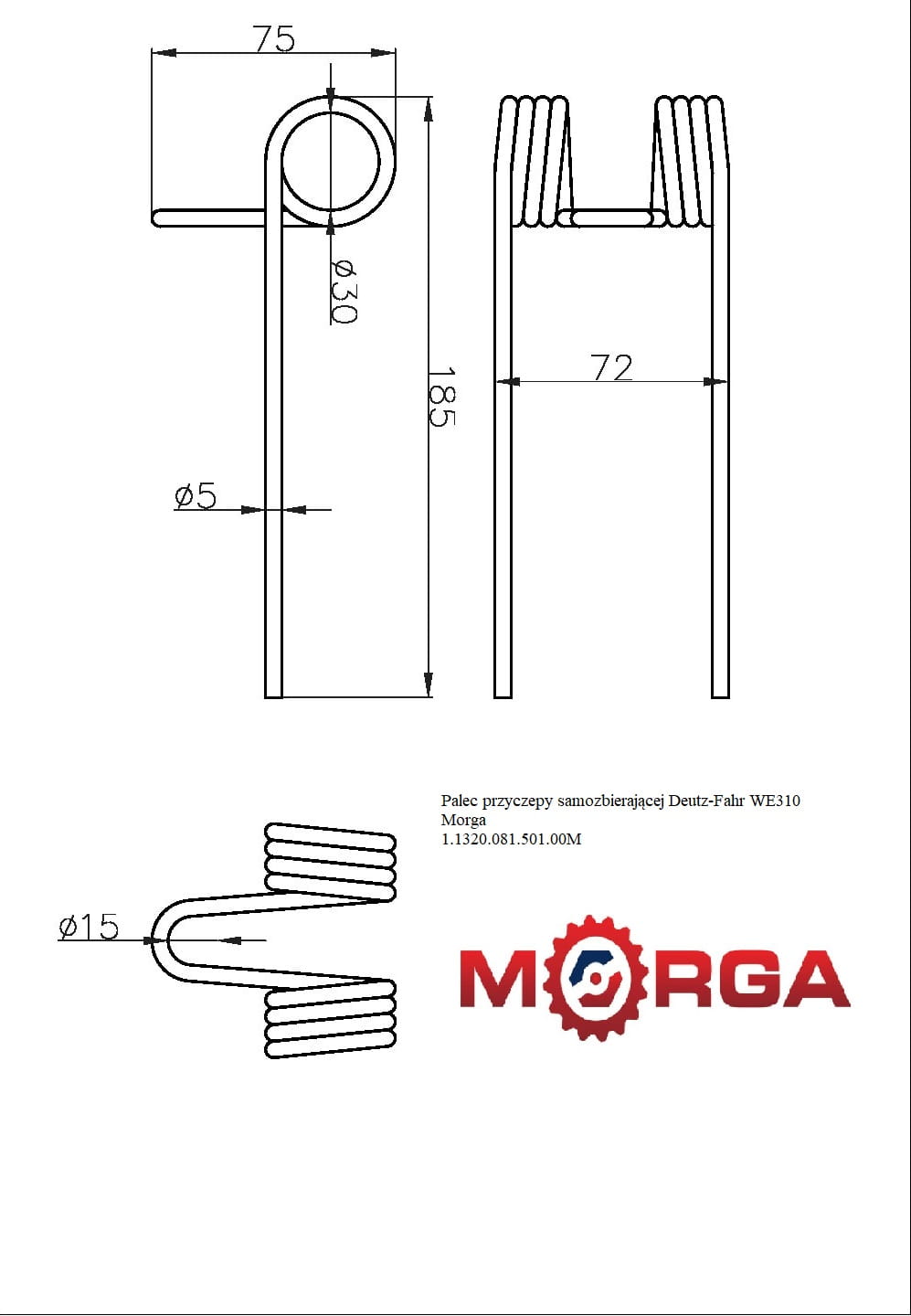 Palec przyczepy samozbierającej Deutz- Fahr WE310 1.1320.089.511.00 MORGA