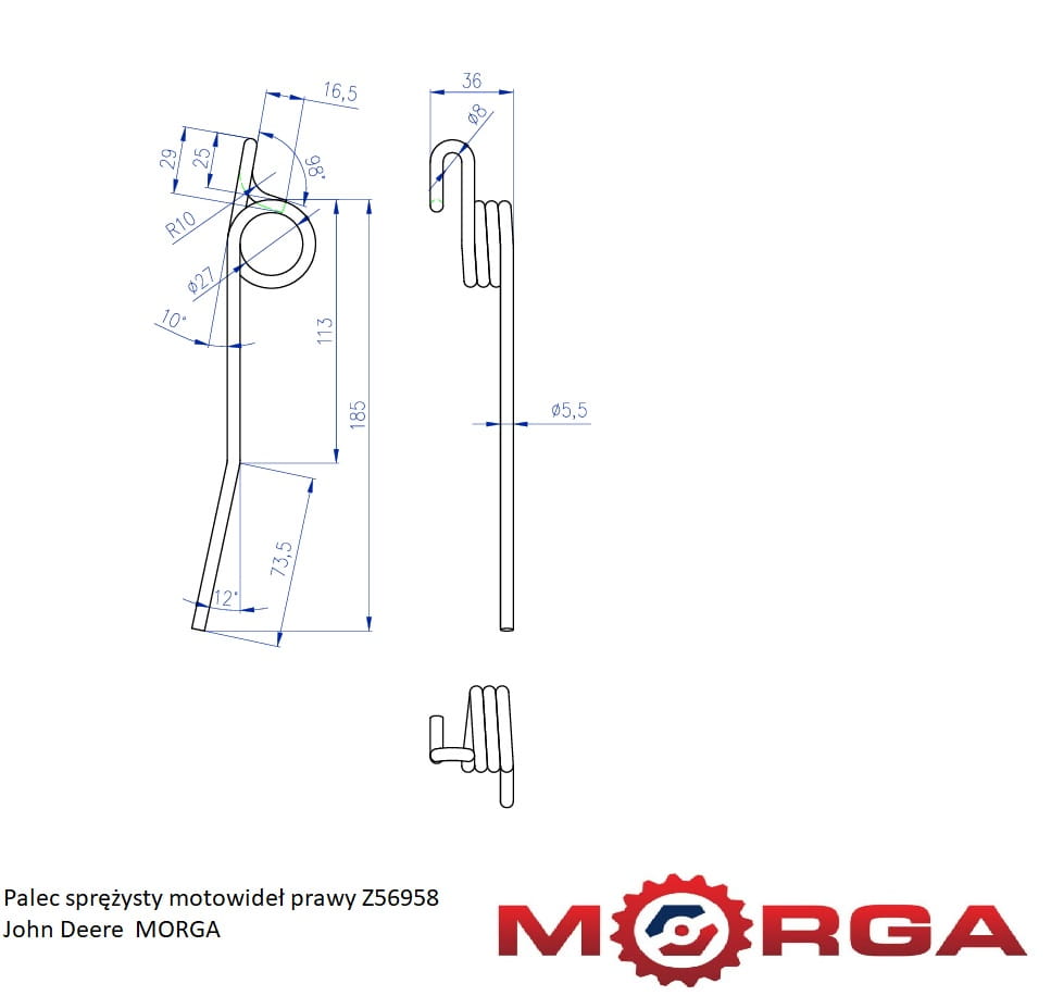 Palec sprężysty motowideł prawy Z56958 John Deere MORGA