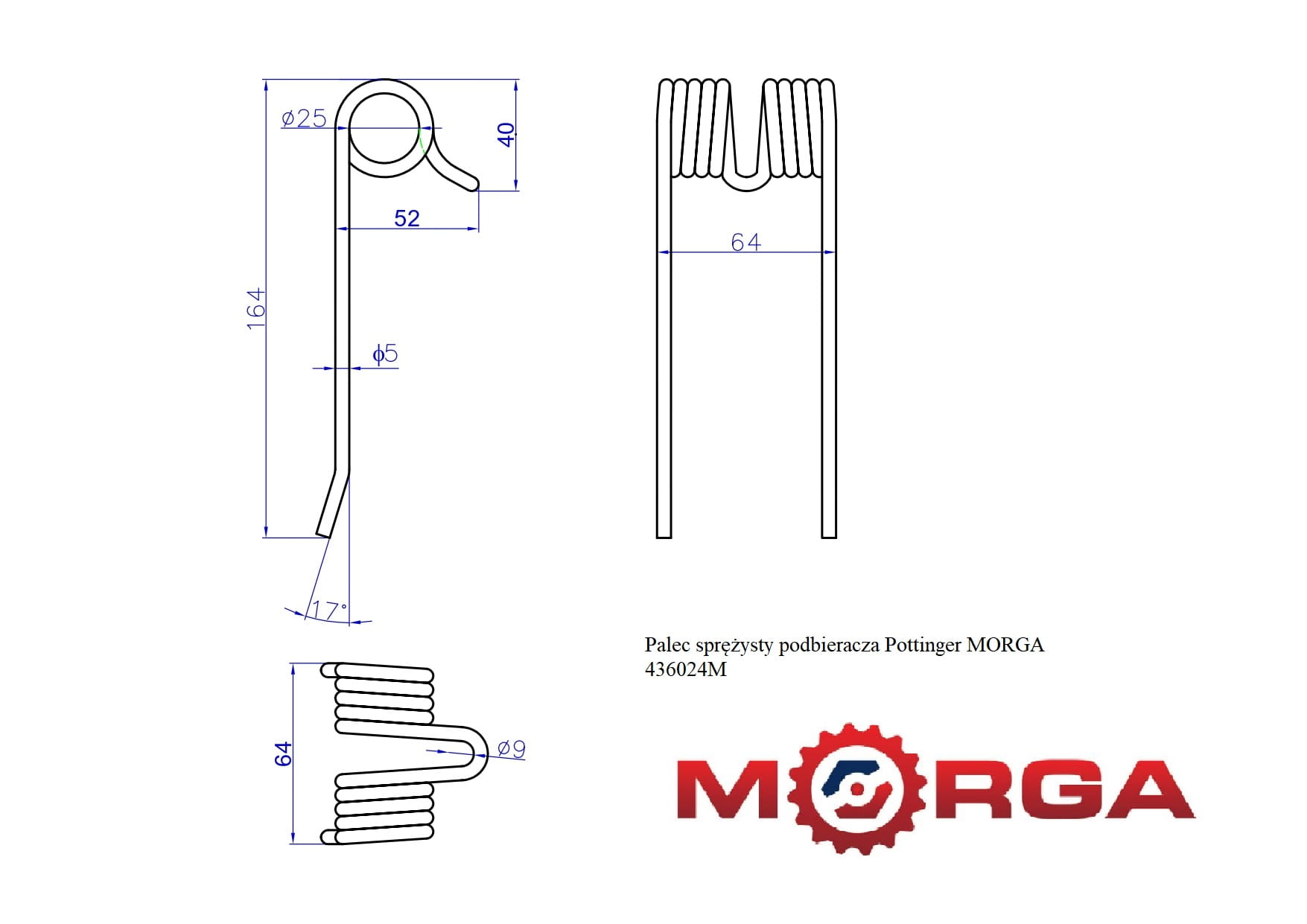 Palec sprężysty podbieracza Pottinger malowane proszkowo MORGA