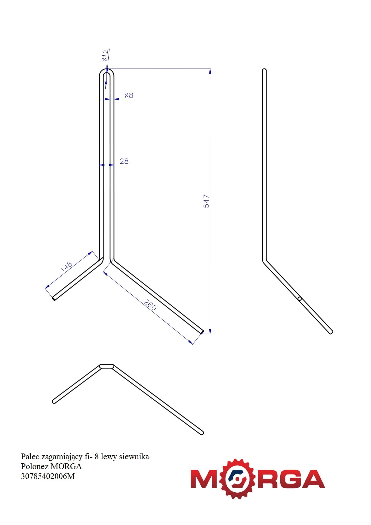 Palec zagarniający fi- 8 lewy siewnika Polonez malowane proszkowo MORGA