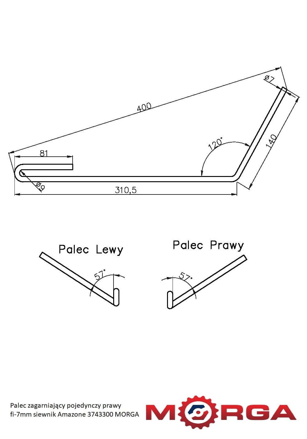 Palec zagarniający pojedynczy prawy fi-7mm siewnik Amazone 3743300 MORGA