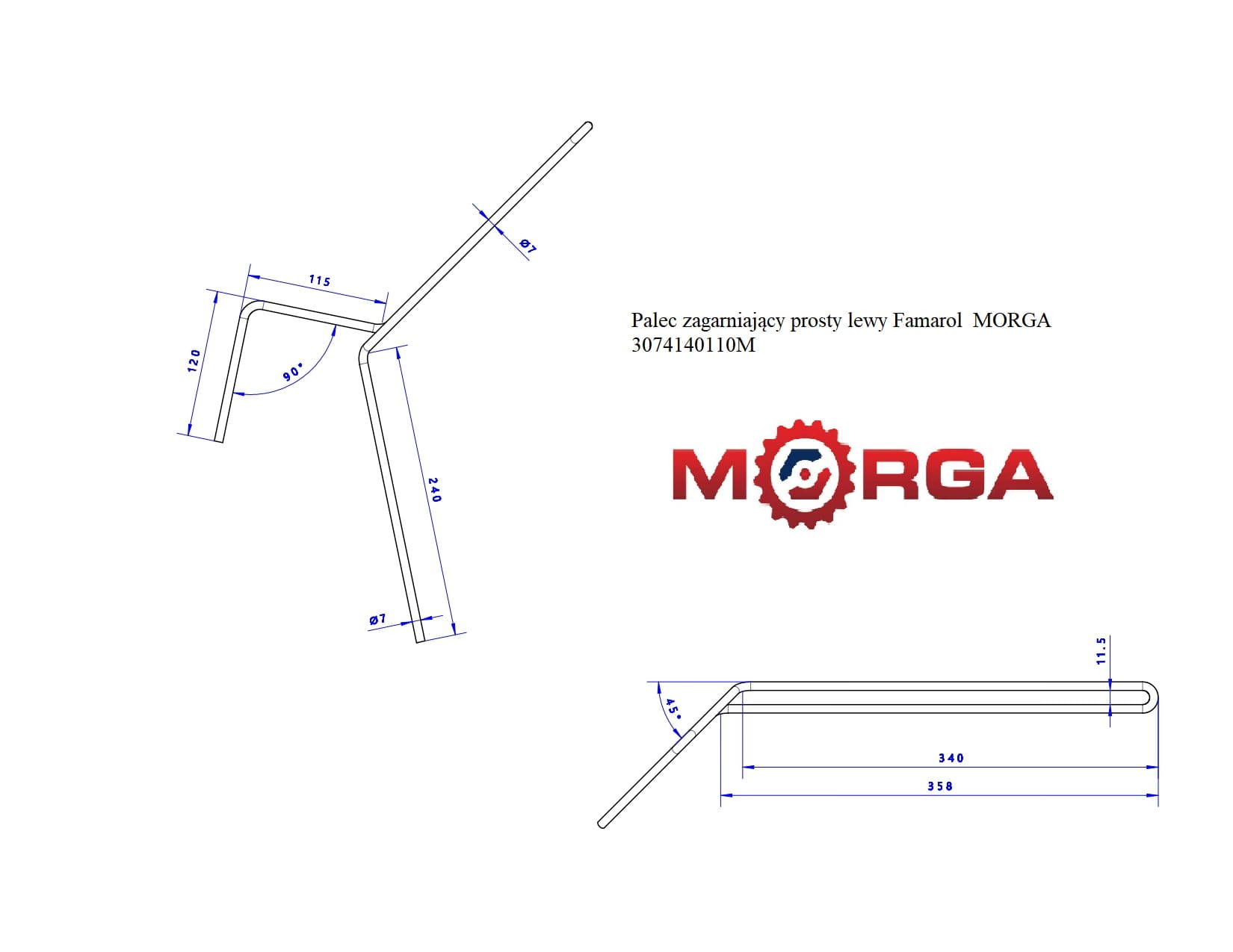 Palec zagarniający prosty lewy Famarol malowane proszkowo MORGA