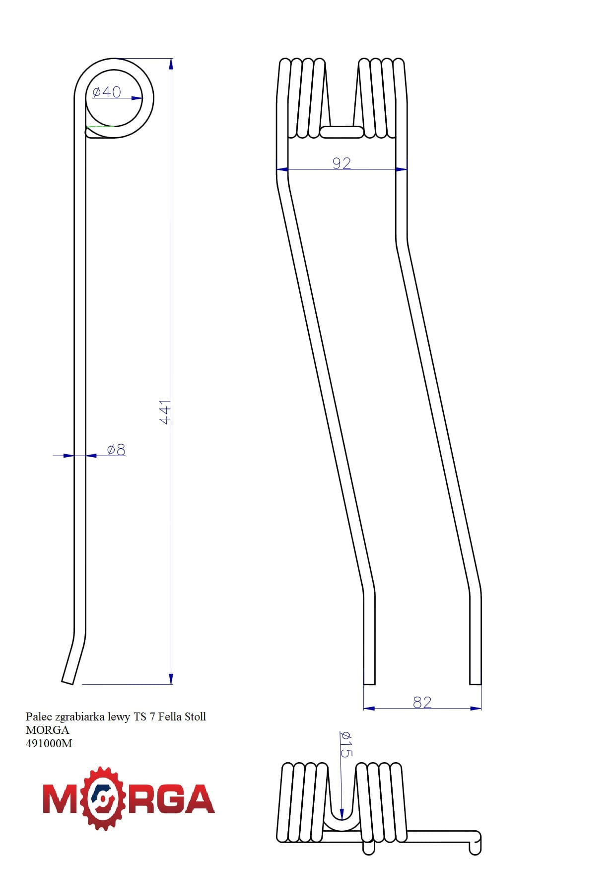 Palec zgrabiarka lewy TS 7 Fella Stoll 491000 malowane proszkowo MORGA