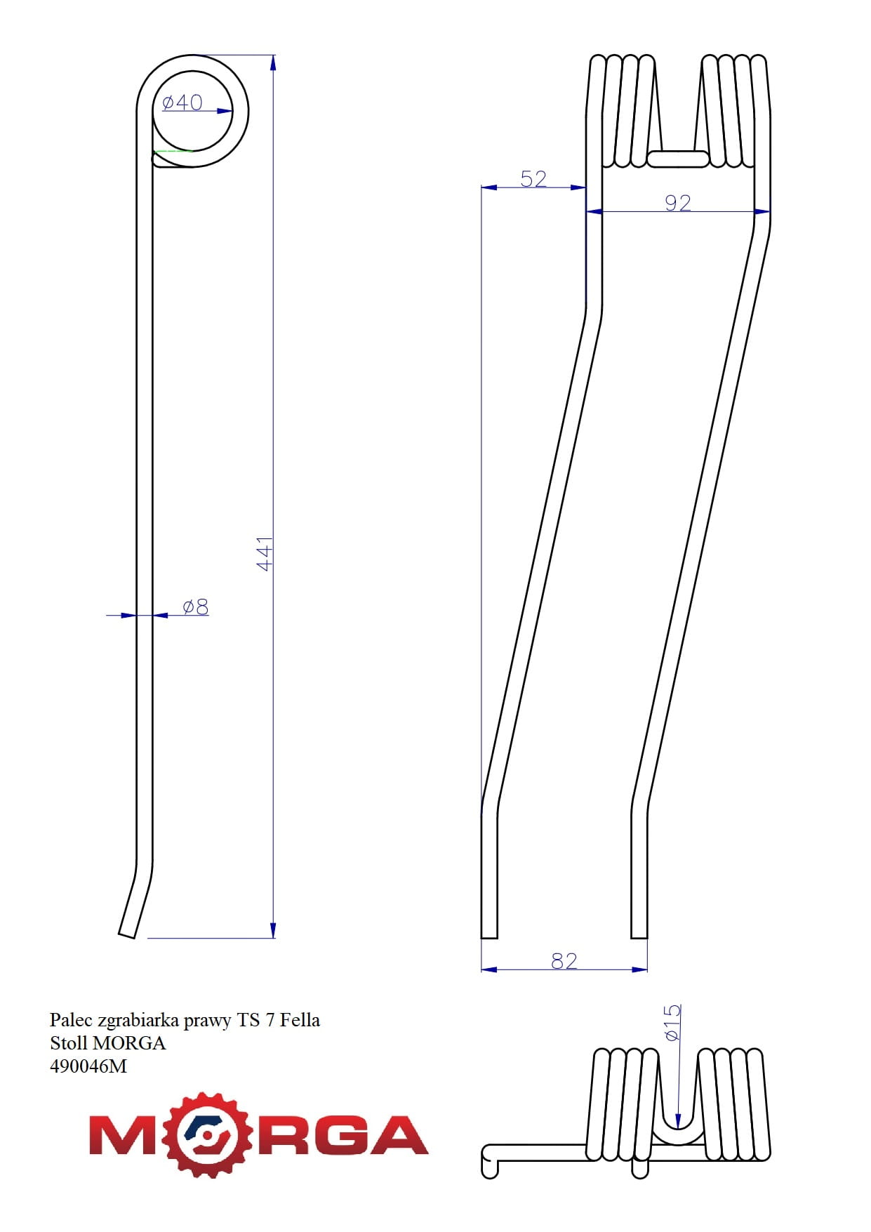 Palec zgrabiarka prawy TS 7 Fella Stoll 490046 malowane proszkowo MORGA