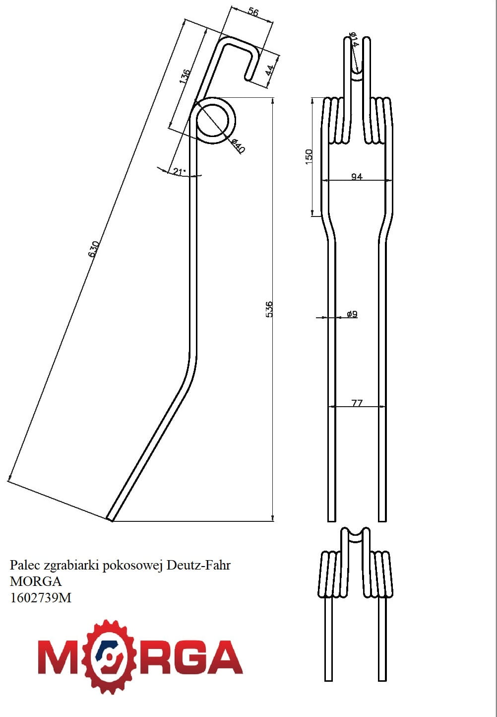 Palec zgrabiarki pokosowej Deutz-Fahr MORGA