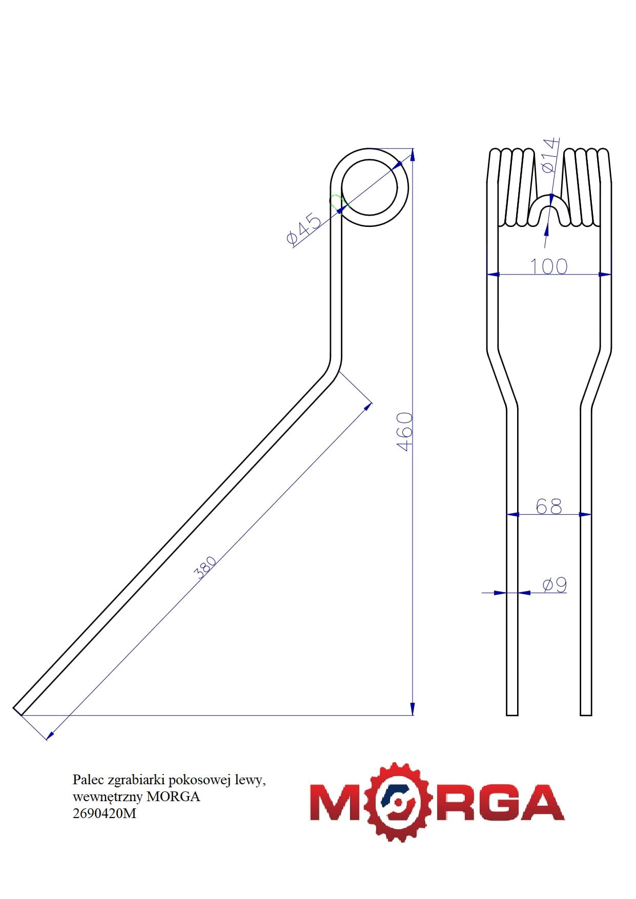 Palec zgrabiarki pokosowej lewy, wewnętrzny 269042.0 malowane proszkowo MORGA
