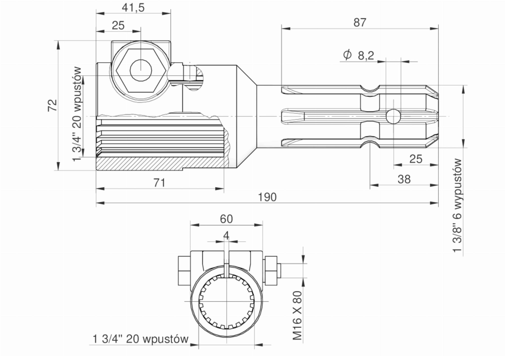 Redukcja wałka WOM adapter na śrubę 1 3/4" 20 wpustów na wałek 1 3/8" 6 wpustów MORGA