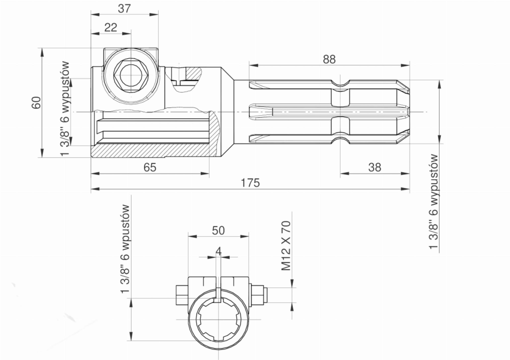 Redukcja wałka WOM adapter na śrubę 1 3/8" 6 wpustów na wałek 1 3/8" 6 wpustów MORGA