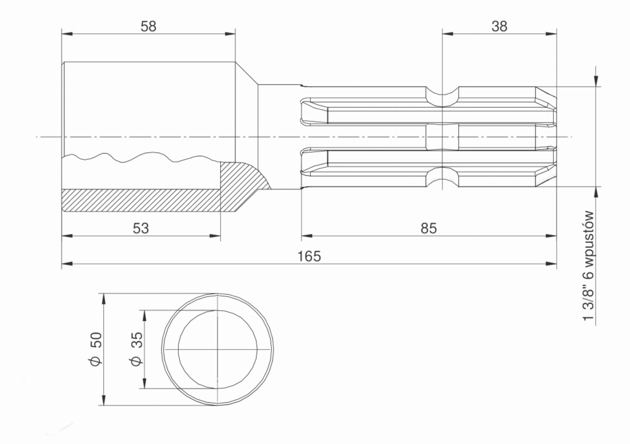 Redukcja wałka WOM adapter otwór wew. Q 35 mm na wałek 1 3/8" 6 wpustów MORGA
