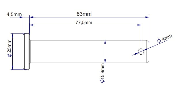 ✔️ Długość robocza sworznia (do osi otworu) - 77,5 mm
