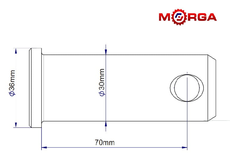 ✔️ Długość robocza sworznia (do osi otworu) - 70 mm