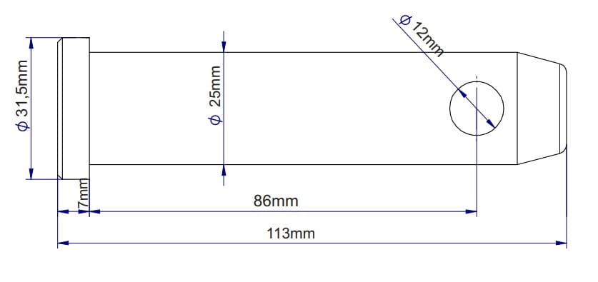 ✔️ Średnica całkowita sworznia - 31,5 mm